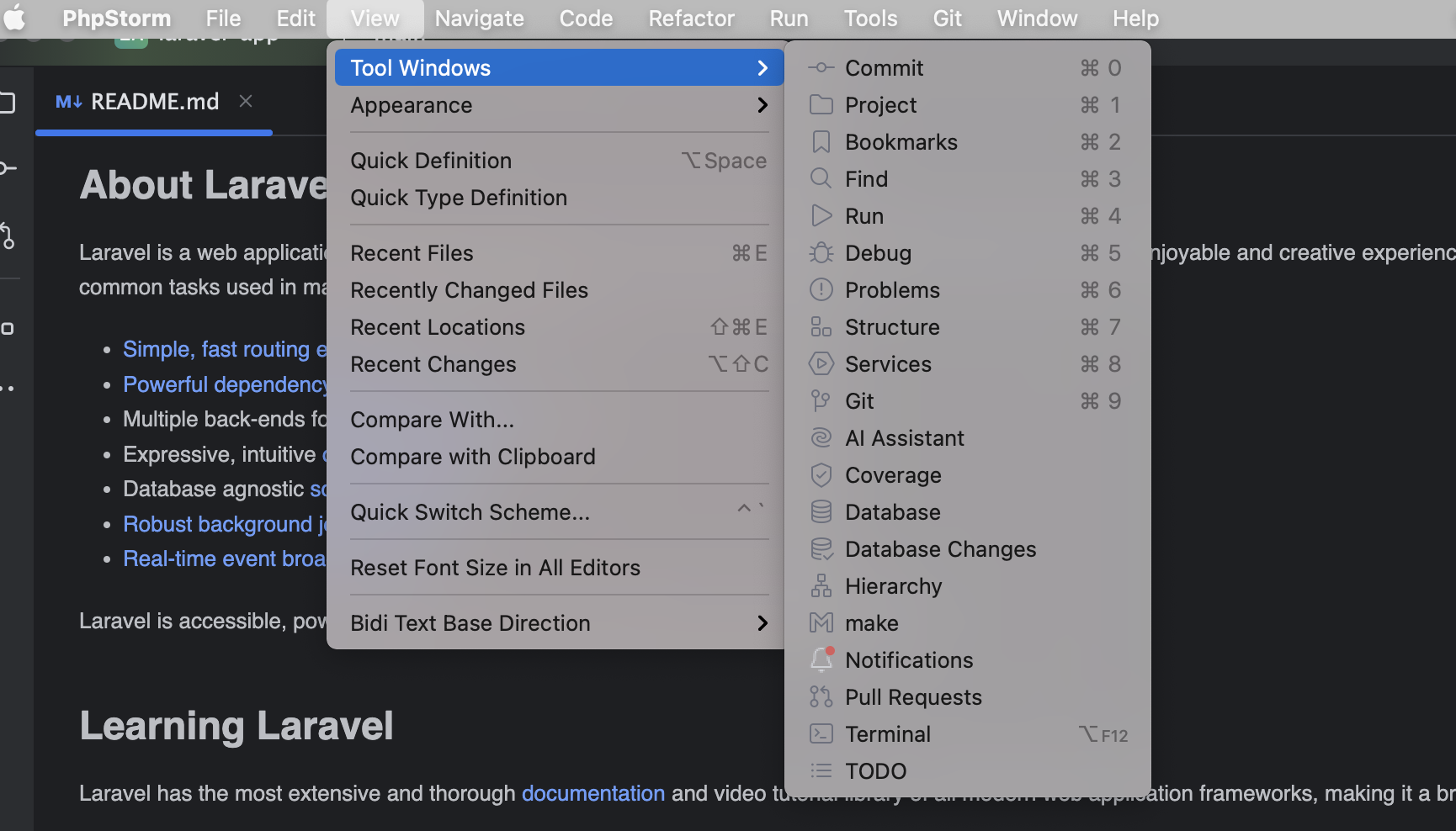 1) 우측 메뉴툴바에서 `View > Tool Windows`확인