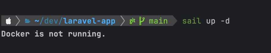 따라서 docker를 꼭 실행해 주도록 한다. 이때 Laravel 프로젝트로 실행하므로 나는 아래와 같은 명령어로 도커를 background에서 실행한다.