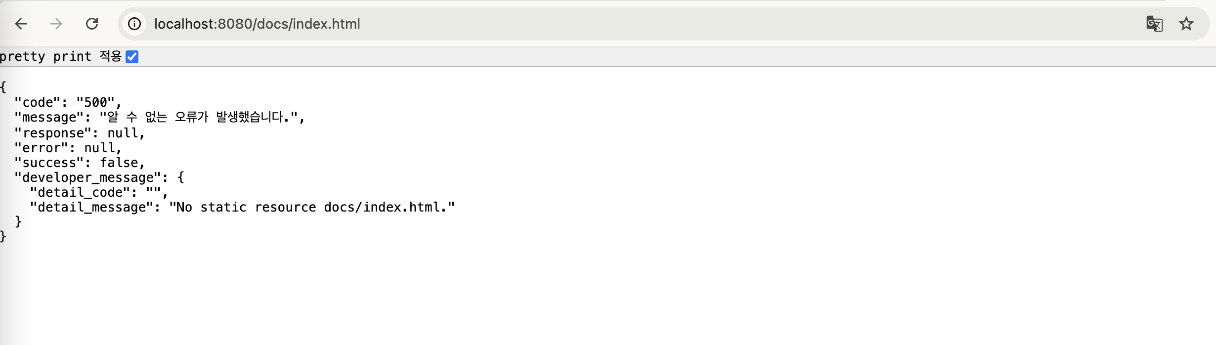 RestControllerAdvice의 basePackage 파라미터를 통해 적용할 범위를 지정해 준다. 해당 범위 내에서 에러 발생시 위 파일내에서 처리 가능한 에러 종류라면 적절하게 처리되어진다.